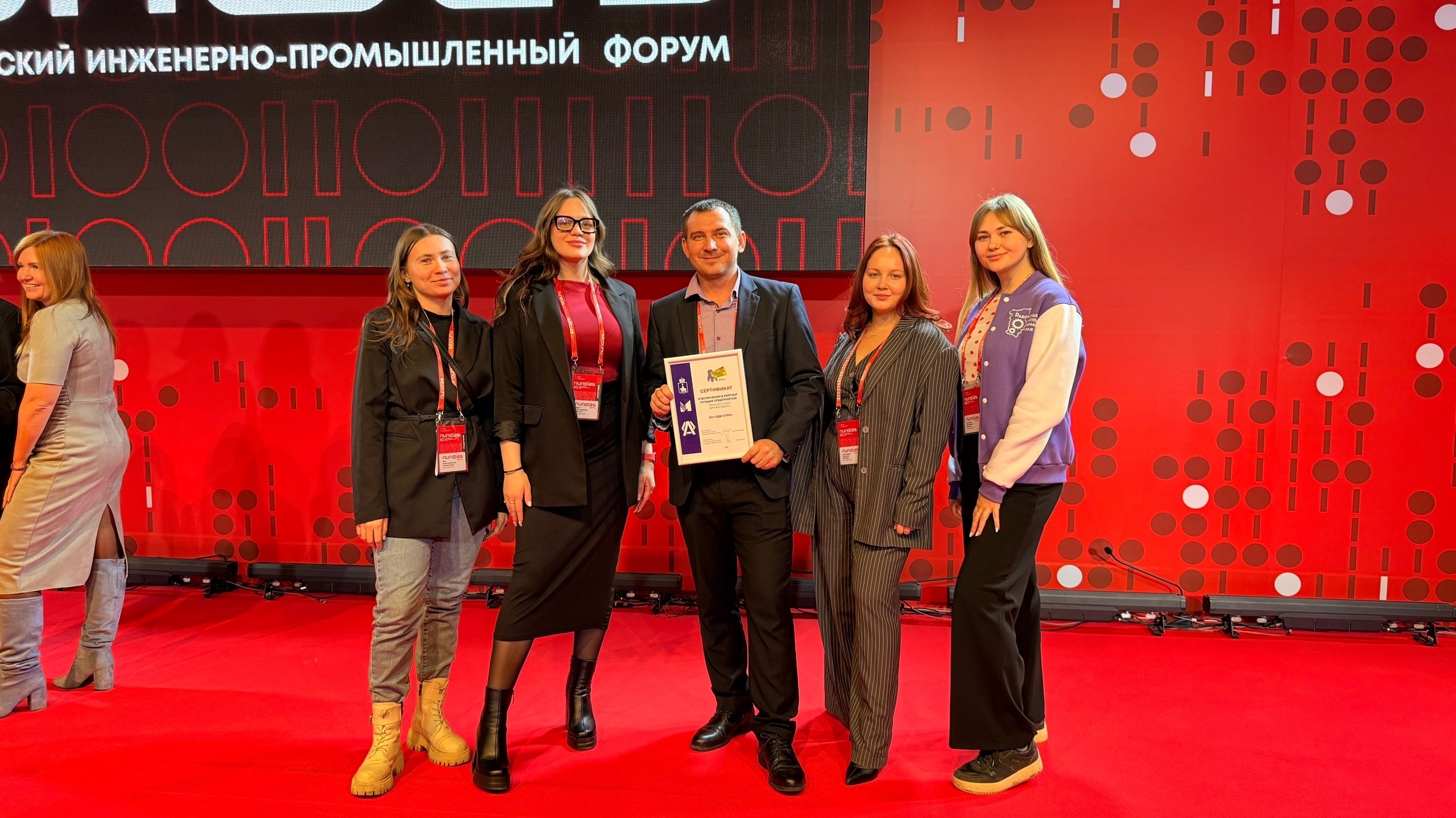 В завершении форума подвели итоги рейтинга на лучшую систему работы с молодежью на промышленных предприятиях Пермского края в 2025 году. ОДК-СТАР вручили сертификат участника рейтинга.