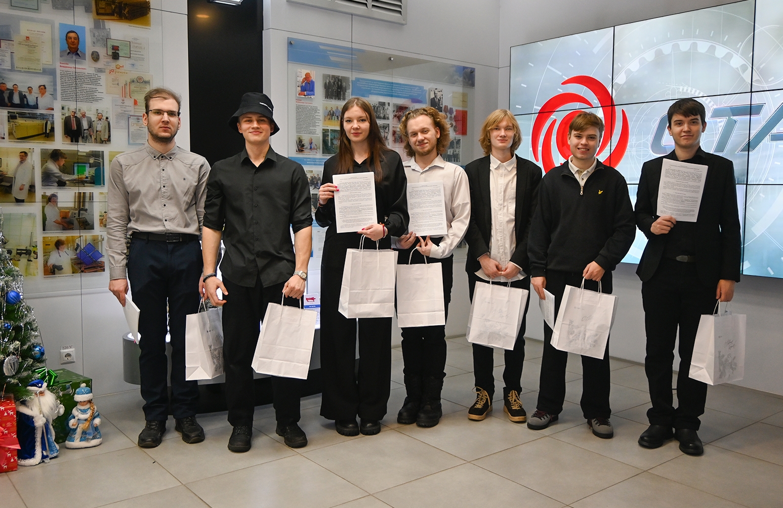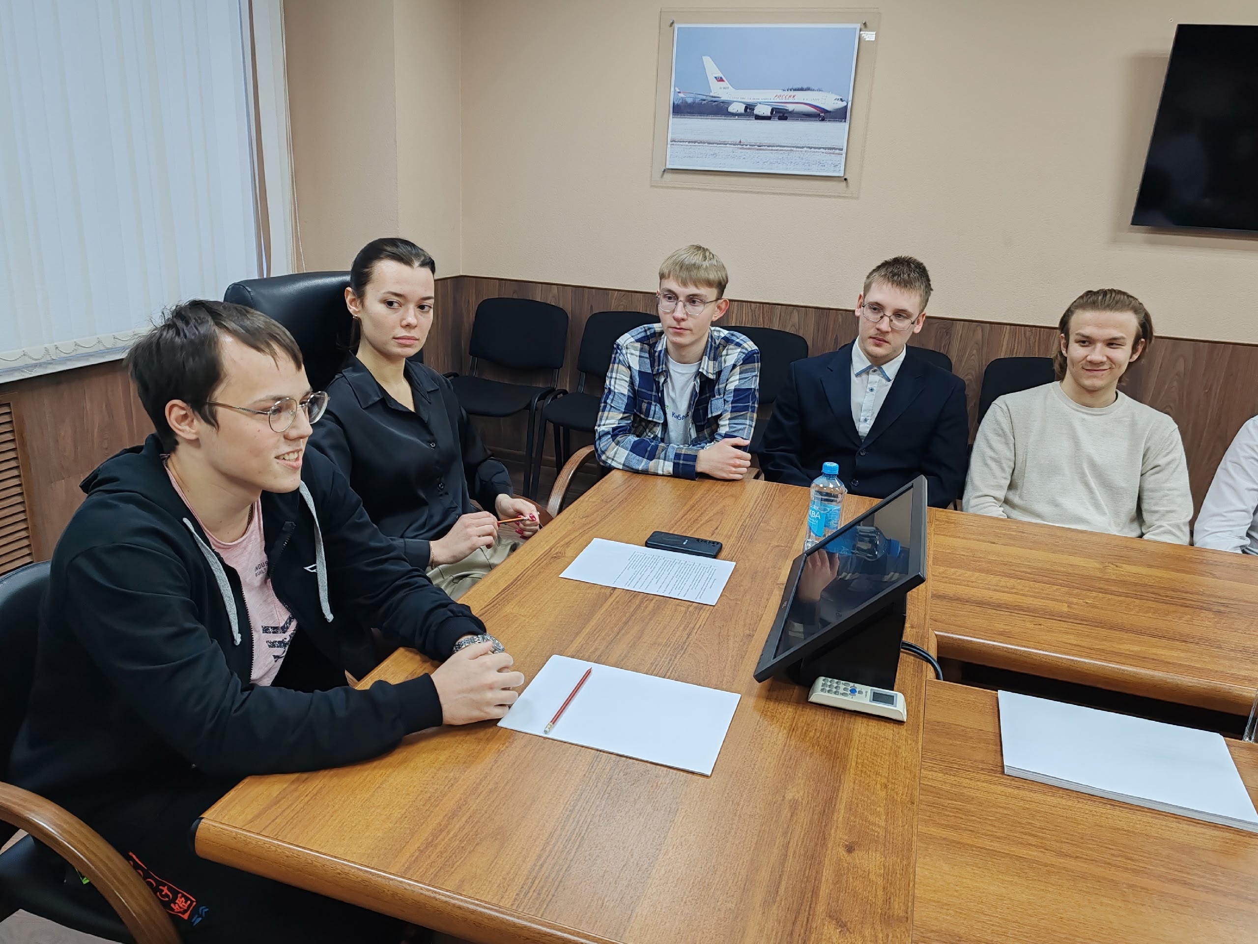 Первые выпускники образовательного проекта «Крылья Ростеха», нынешние инженеры-конструкторы ОДК-СТАР (член СоюзМаш России) Лев Новоселов, Полина Сторчевая, Иван Тетеля и Иван Зырянов встретились со студентами-первокурсниками. |
