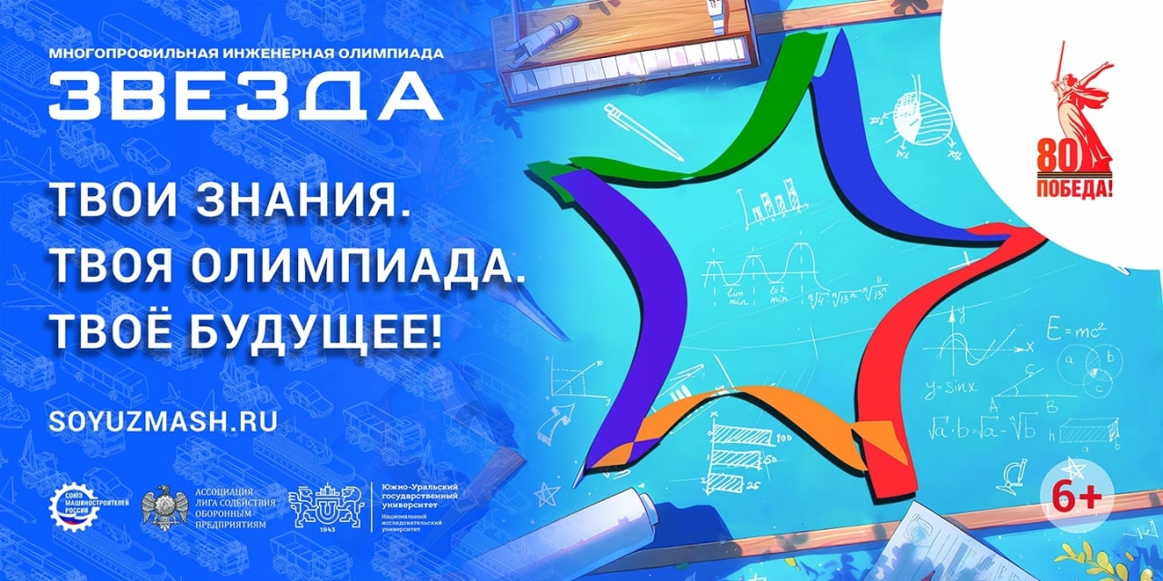 20 октября 2025 года стартовал отборочный этап многопрофильной инженерной олимпиады «Звезда». Организаторами выступают Союз машиностроителей России и Лига содействия оборонным предприятиям при поддержке Министерства науки и высшего образования Российской Федерации, Госкорпорации «Ростех» и Южно-Уральского государственного университета. |
